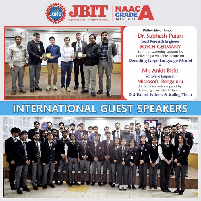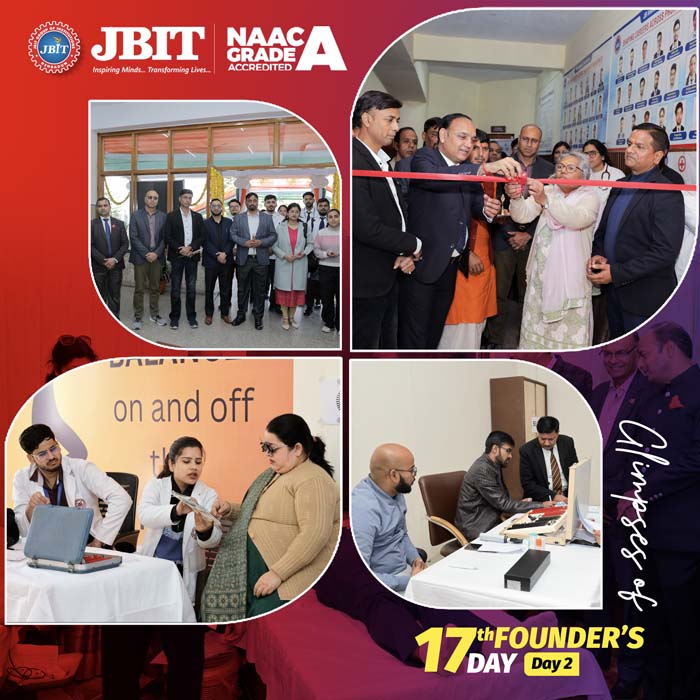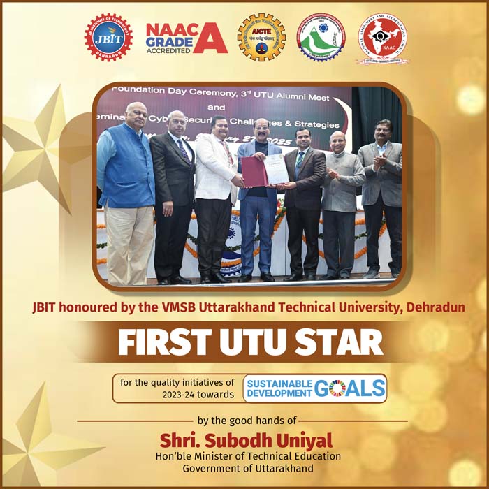 The JBIT Group of Institutions, established by the Jai Bhagwan Educational Society, Dehradun under the vision and patronage of our late Founder Chairman, Shri L. D. Singhal Ji, is dedicated to the noble cause of humanity by imparting professional education. Since its inception in 2009, JBIT has been a pioneer in offering quality education in Engineering, Pharmacy, Agriculture, and Business Studies etc. to students from across India and neighboring countries. Over the past 17 years, our commitment to quality has earned us numerous awards and accolades. Join us and embark on a journey of excellence, innovation, and success at the serene foothills of the Himalayas.